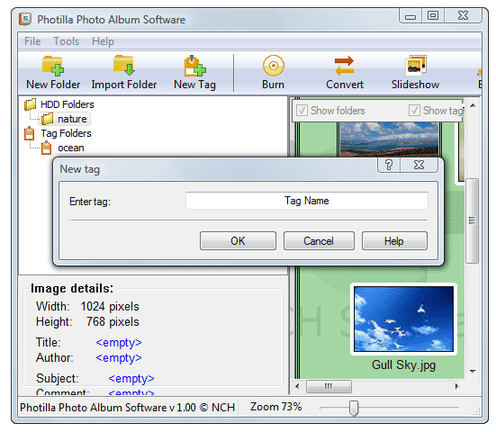See how Photilla can work for youImport and organize your digital photos and imagesThis product has now been replaced with PhotoPad, a fully featured photo editor which helps you create collages and mosaics, add frames and borders to your photos, stitch together photos to create panoramas, and more. Offering great flexibility in categorizing your photos, Photilla lets you display a single photo in more than one album. Just drag and drop your photos into the albulms of your choice. You can then burn your photos onto CD individually or as complete albums. Learn more about PhotoPad Photo Editing Software... | |